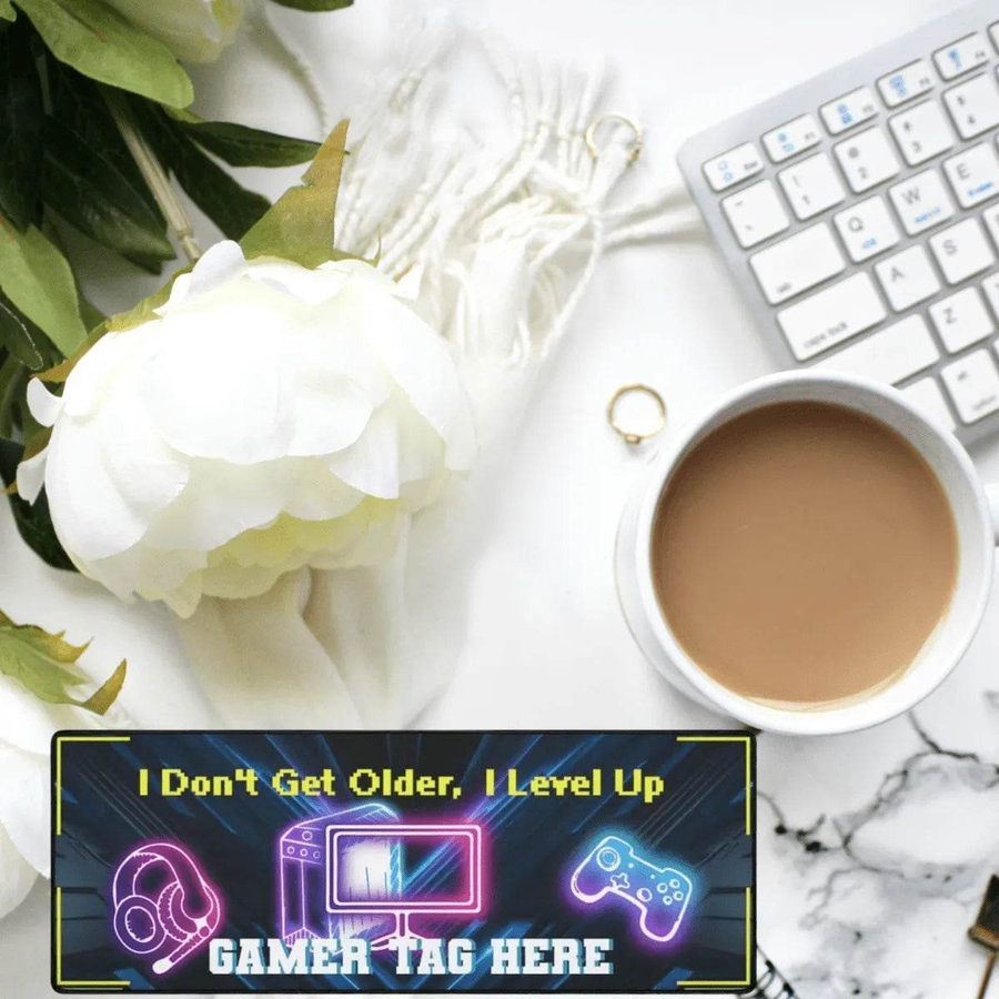 Personalized Gamer Slogan: Features the "I Level Up" motto and your own custom gamer tag.